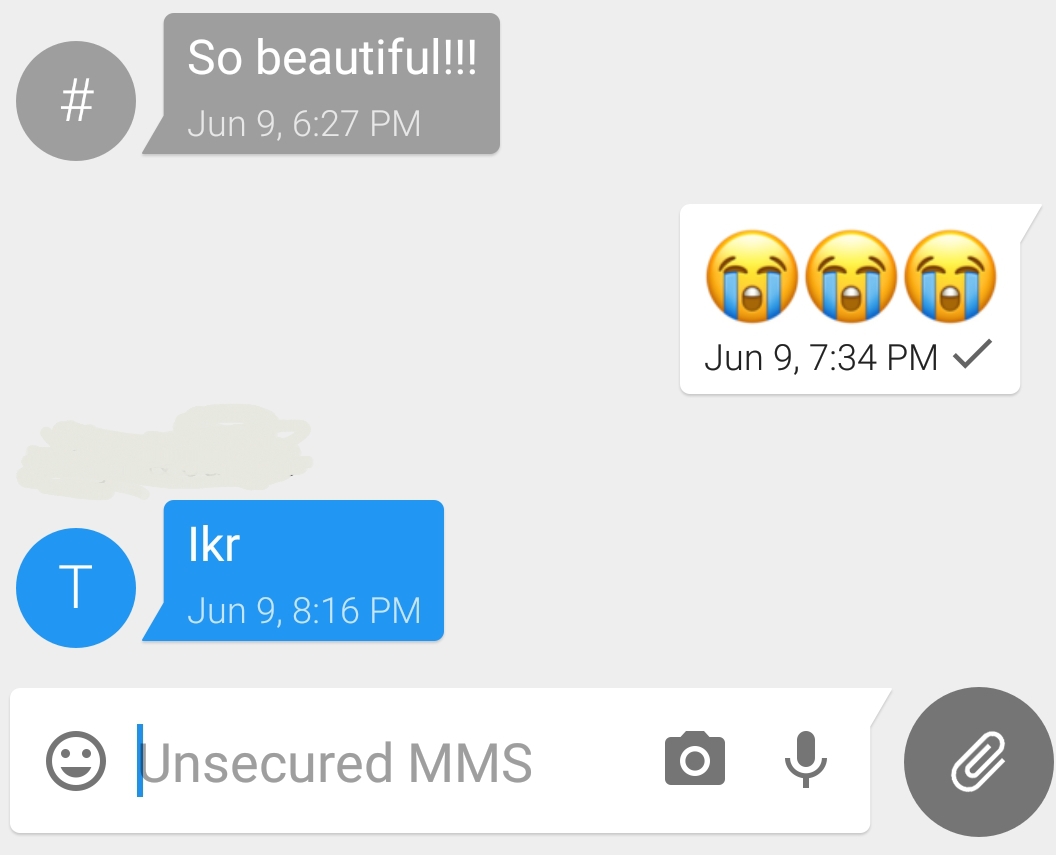 Screenshot of unencrypted text messages in Signal. The text box at the bottom reads “Unsecured MMS.”