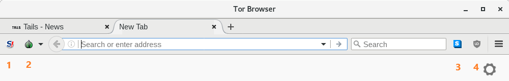 - Tor settings – this is the most important feature. When the logo is green, you are connected to the Tor network. Click the pull down menu and you can see the nodes that you’re connected to.